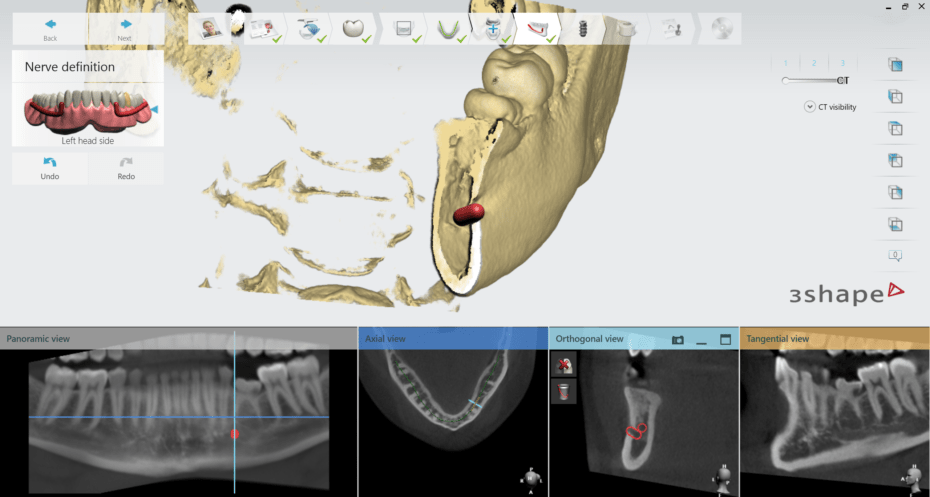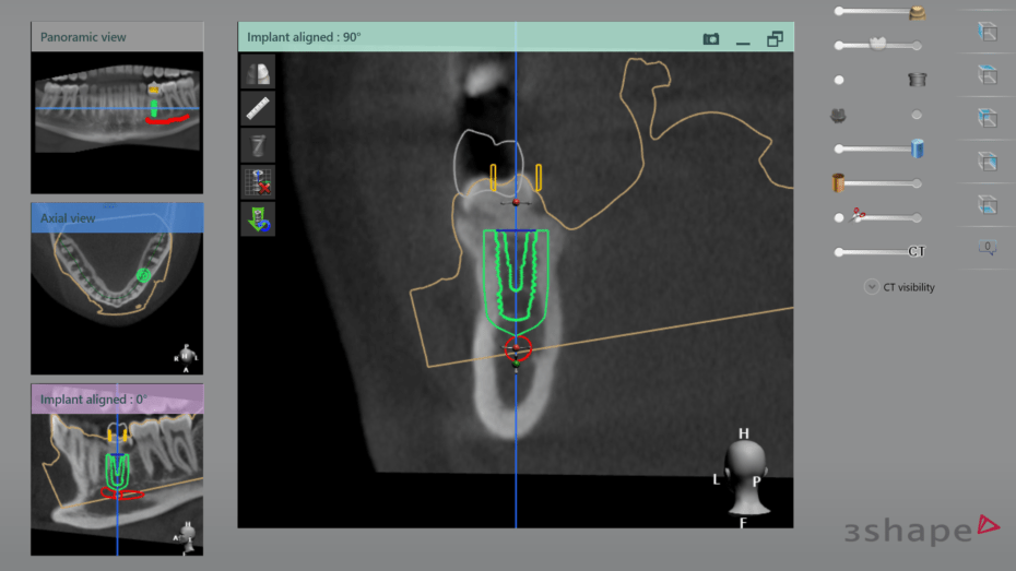 It all starts with a CBCT scan of the patient, and initial impressions of what’s presently in the mouth. With these two separate types of information, we then combine it so that the software replicates the information in layers that interact with each other, so we can then see the bone available for the implant site in relation to the planned restoration, or position of adjacent teeth depending on the situation. Having this information at our disposal is imperative to improving the predictability of patient outcomes! We are able to plan everything from proper implant depth levels, to fixture width and length, to approximation in regard to alveolar nerves, to even controlling screw access hole placement.