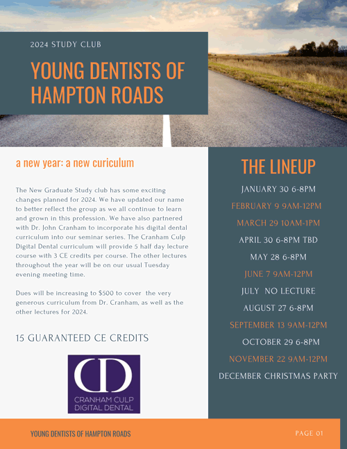 This study club designed specifically for new dental graduates provides a quality educational environment to encourage development of new skills and understanding, promote personal and professional growth, and facilitate collaboration. Contact Dr. Chanel Stohrer for more information and to join this club. (Insert form for Dr. Stohrer)